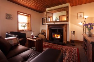 Living room with wood heater